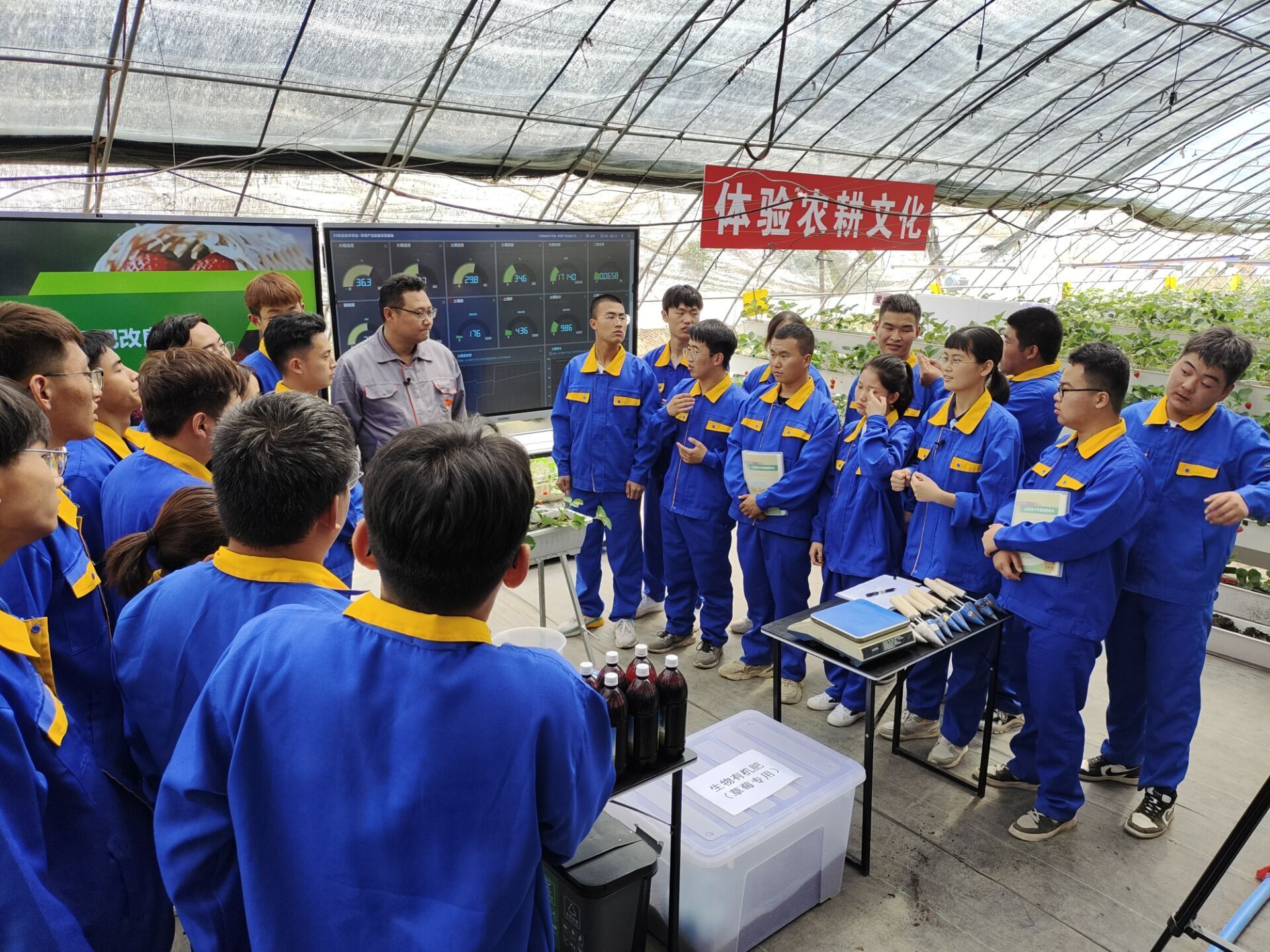 3.建成劳动教育基地,引导学生以劳树德增智。为深入推进学生劳动精神教育,学校先后印发《关于进一步加强学生劳动教育的意见》和《劳动课实施办法》,并结合已有的农林综合实训基地建立了学生劳动教育基地,每年有计划的组织学生在此进行果树避雨栽培、智能温室蔬菜种植、花卉和瓜果类的日光温室栽培、草莓和食用菌的日光温室立体栽培、造园技能训练、雕刻技艺传承学习等劳动实践。