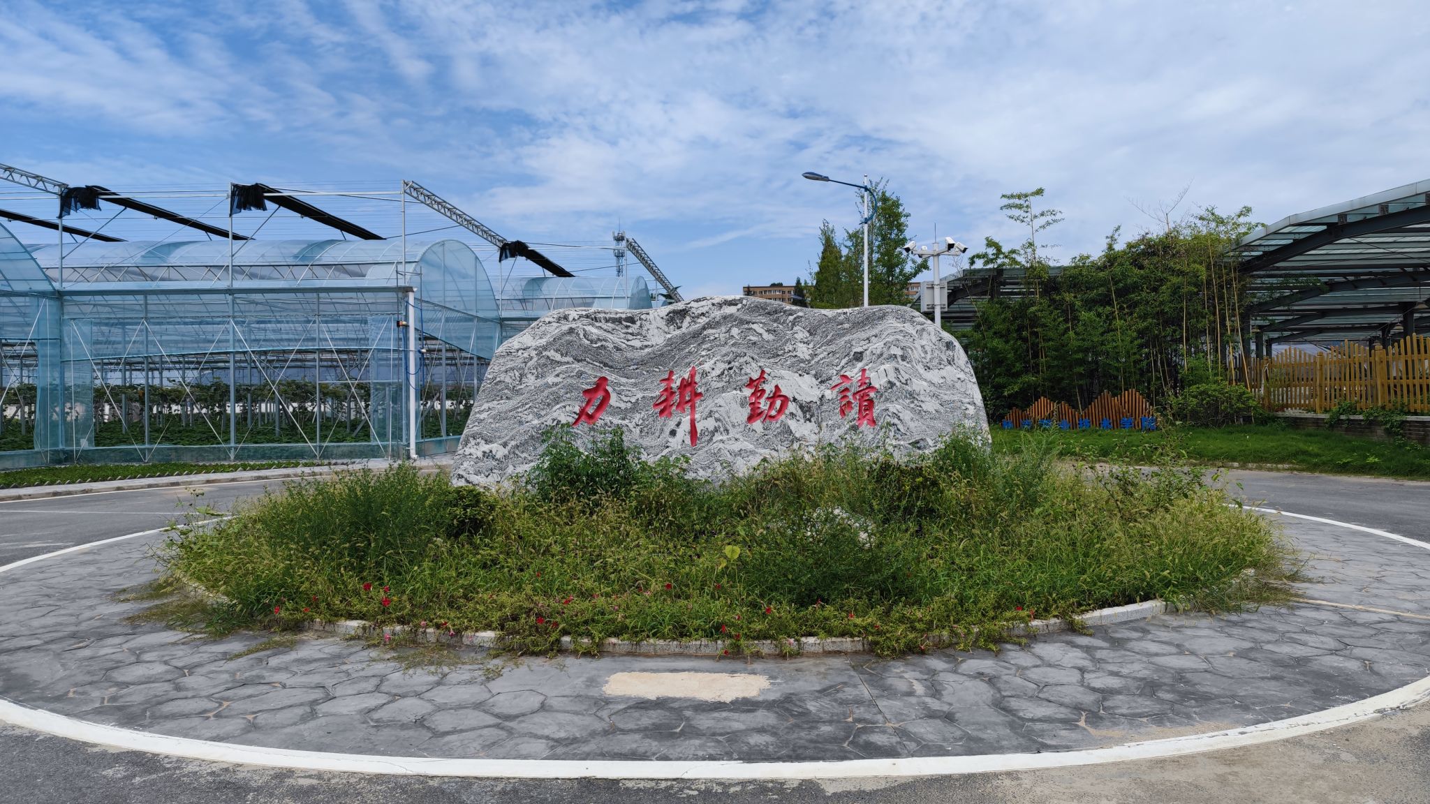 4.设立“力耕勤读”景观石。学校在学生劳动教育基地设立了长6米、高2.6米的“力耕勤读”景观石,并在背面镌刻《劳动赋》一篇,以弘扬“耕以养身,读以明道”的耕读文化精神。