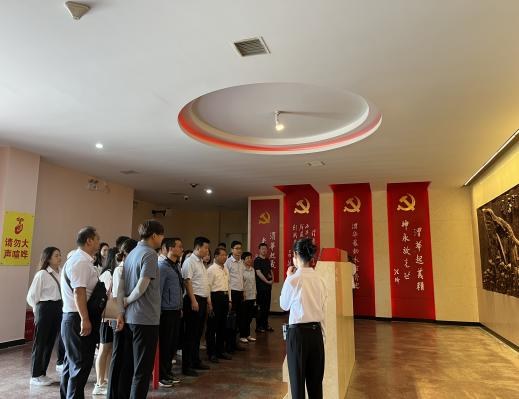 在渭华起义烈士纪念碑广场,全体党员鞠躬默哀,缓步绕行纪念碑一周瞻仰基座浮雕和碑文。走进渭华起义烈士陵园,大家轻轻擦拭烈士墓碑、深深的鞠躬,表达对革命先烈的深切缅怀。在渭华起义陈列馆和革命旧址,大家详细了解了渭华起义的历史背景和全过程,学习了渭华起义中革命先辈们的英勇事迹,通过一张张照片,一件件旧物,仿佛又一次走进了那段充满血与火的峥嵘岁月。