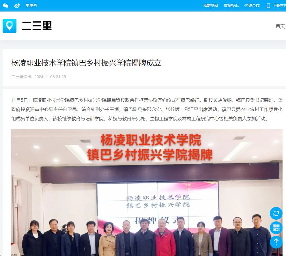 此次合作是推动镇巴乡村人才建设的重要举措,学院的成立将进一步完善和提升乡村振兴人才培养体系。双方将建立定期会商机制,强化合作关系,探索合作新途径、新方式,围绕乡村产业、人才、文化、生态和组织振兴等领域,共建多个基地,努力培养一支懂农业、爱农村、爱农民的乡村振兴工作队伍和下得去、留得住、用得上的技能型人才,为镇巴乡村全面振兴提供坚实的人才支撑和能力保障。