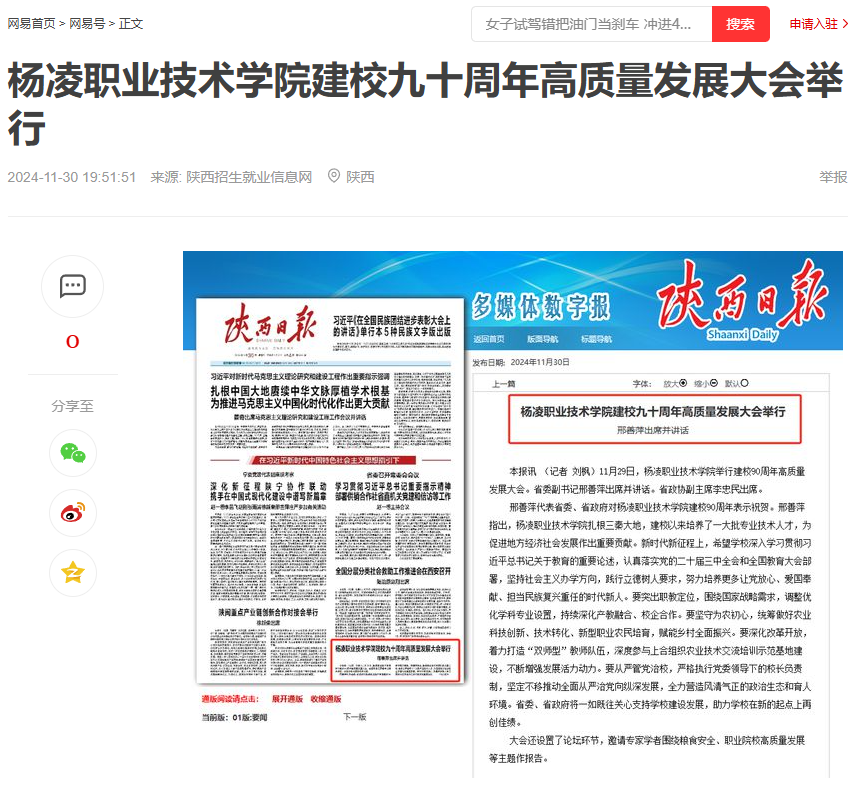 邢善萍代表省委、省政府对williamhill威廉希尔官网建校90周年表示祝贺。邢善萍指出,williamhill威廉希尔官网扎根三秦大地,建校以来培养了一大批专业技术人才,为促进地方经济社会发展作出重要贡献。新时代新征程上,希望学校深入学习贯彻习近平总书记关于教育的重要论述,认真落实党的二十届三中全会和全国教育大会部署,坚持社会主义办学方向,践行立德树人要求,努力培养更多让党放心、爱国奉献、担当民族复兴重任的时代新人。要突出职教定位,围绕国家战略需求,调整优化学科专业设置,持续深化产教融合、校企合作。要坚守为农初心,统筹做好农业科技创新、技术转化、新型职业农民培育,赋能乡村全面振兴。要深化改革开放,着力打造“双师型”教师队伍,深度参与上合组织农业技术交流培训示范基地建设,不断增强发展活力动力。要从严管党治校,严格执行党委领导下的校长负责制,坚定不移推动全面从严治党向纵深发展,全力营造风清气正的政治生态和育人环境。省委、省政府将一如既往关心支持学校建设发展,助力学校在新的起点上再创佳绩。