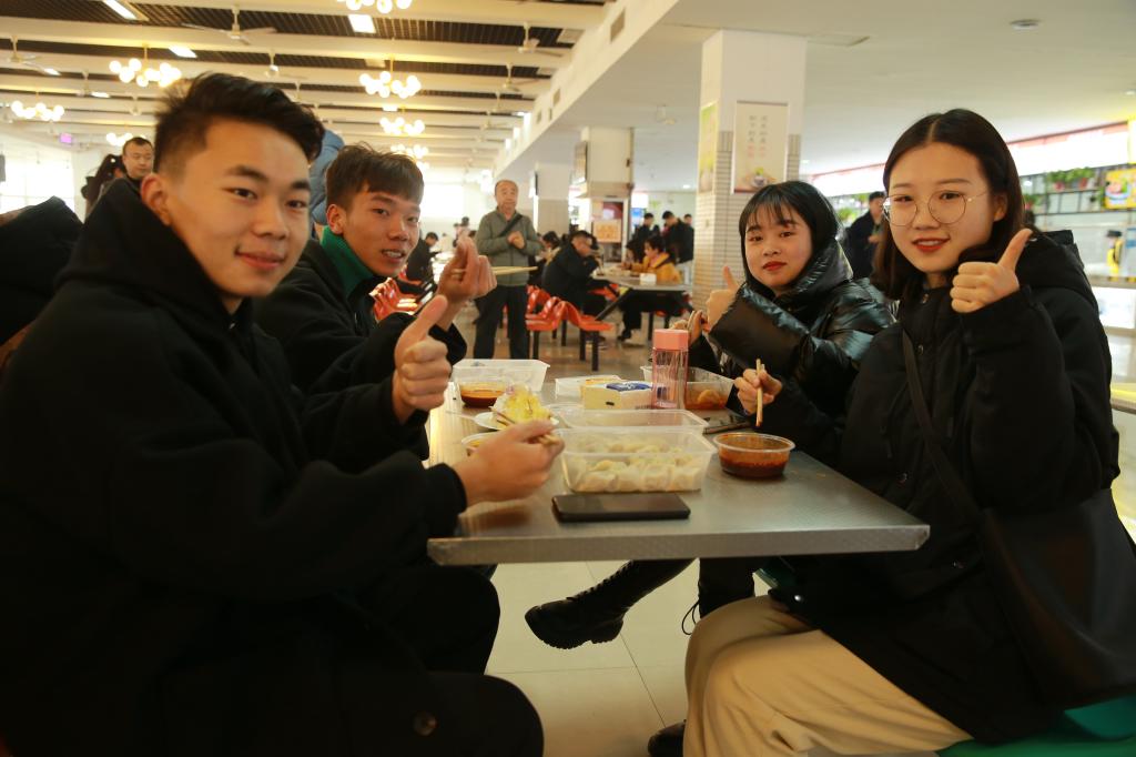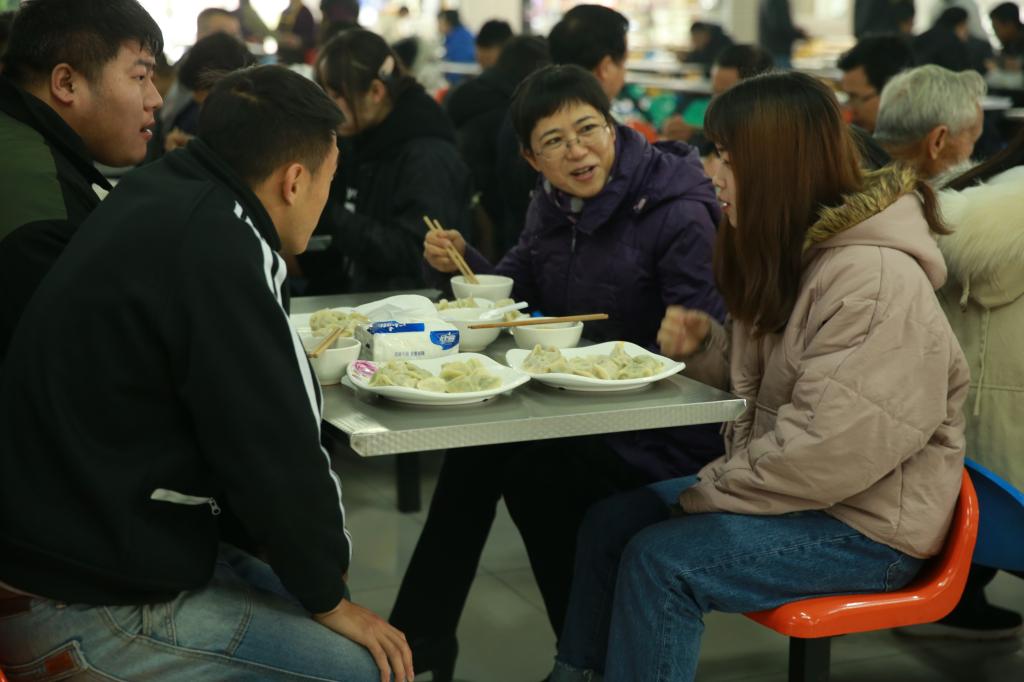 “你们是哪个专业的学生?老师讲课都能听懂吗?”“能适应大学的学习生活吗?”“学校的社团活动多吗?你们经常参加吗”……从学习到生活,学院领导和赵瑜老师亲切的话语、和蔼的笑容,让学生们感到十分温暖。大家一边品尝着香喷喷的饺子,一边拉家常、聊学习、谈生活、话冬至,欢声笑语随着饺子的香味弥漫在整个餐厅里。