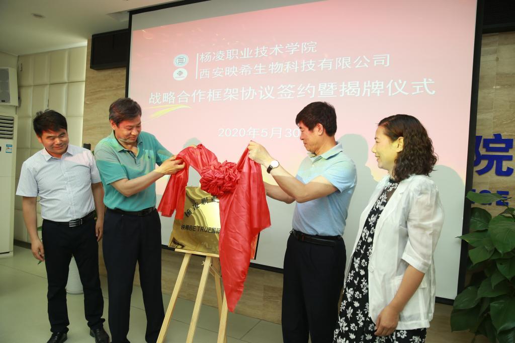 5月30日上午,我院与西安映希生物科技有限公司战略合作框架协议签约暨映希BE TRUE国际宠业培训学院揭牌仪式在醒钟楼204会议室举行。省农业农村厅市场与信息化处处长樊凌翰、学院副院长张迪参加仪式,并为我院映希BE TRUE国际宠业培训学院揭牌。