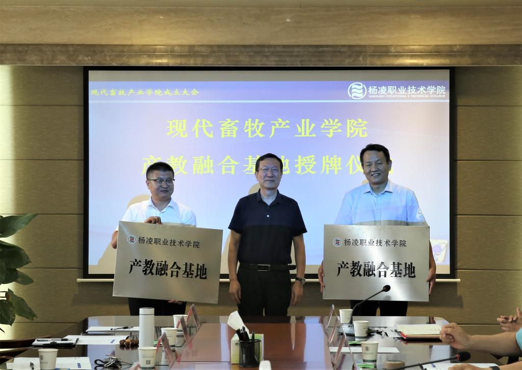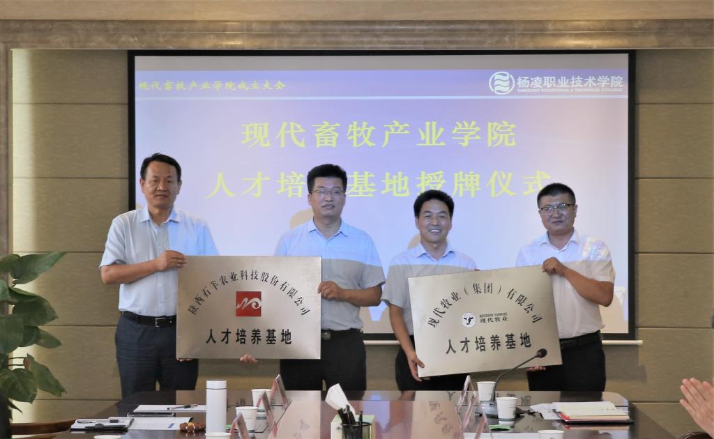 任得元向石羊农科、现代牧业(宝鸡)有限公司授予学院产教融合基地牌匾