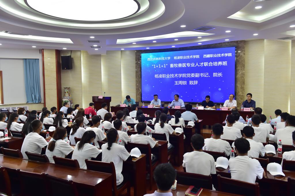 王周锁致欢迎辞,他首先代表全院2万余名师生对专程来我院学习的43名西藏学生表示热烈欢迎,并向他们简要介绍了学院和动物工程分院的办学历史和发展现状。他指出,三校联合培养畜牧兽医专业人才,是贯彻落实总书记讲话精神,提升西藏职业技术学院服务藏区社会经济发展能力的具体行动。他希望同学们珍惜机会,通过此次联合培养班的学习,将来能够学有所成、学有所得。杨凌职院也将本着对学生负责、对西藏职院负责、对国家负责的态度,尽可能创造良好的条件,培养学生的敬业精神和职业操守,培养学生的专业水平和操作能力,培养学生的志趣爱好和生活热情,使我们的学生成为德智体美劳全面发展的新时代建设者和接班人。