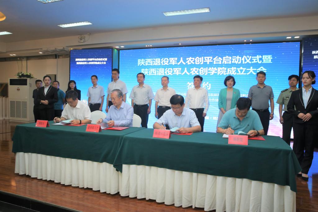 会上,我院副院长张迪代表学院与省退役军人事务厅、杨凌示范区管委会、西北农林科技大学签订了合作协议。合作协议的签订,标志着退役军人就业创业工作在农创领域全面、长期、稳定合作关系的建立。下一步,将本着“资源统筹、优势互补、共同推进、合作共赢”的原则,充分发挥杨凌示范区和两所大学的资源优势,共同打造陕西退役军人农创平台,共建陕西退役军人农创学院。省退役军人事务厅与陕西文化产业投资控股有限公司、京东西北分公司、西安新华书店股份有限公司签订合作协议,协议各方将在农村文化、农产品物流、乡村书屋等方面发挥优势,为退役军人投身“三农”提供服务支持。