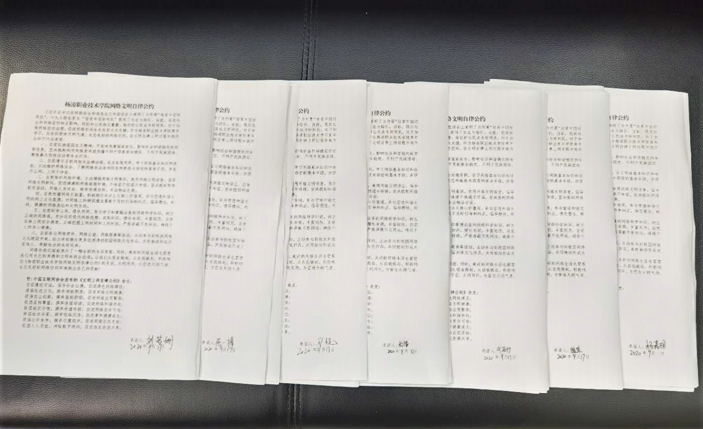 活动中,学院印发“争做中国好网民”倡议书和网络安全宣传周相关资料,利用树立宣传板、发放资料进教室、课堂、饭堂等形式,号召全院师生健康上网、文明上网、理性上网,争做中国好网民。同时,同学们以班为单位签订《williamhill威廉希尔官网网络文明自律公约》承诺书,共同立下庄严承诺。