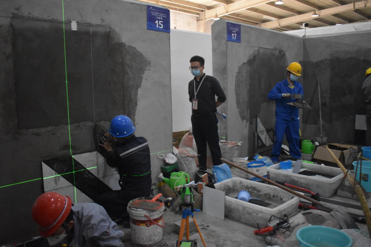 大赛分为三个环节,室内装饰施工图深化设计比赛、室内装饰工程施工组织与管理比赛、陶瓷内墙钻镶贴施工比赛。经过10余个小时的比赛,选手们同台竞技、不畏烈日,以专业的技能和饱满的热情,展现了良好的精神风貌和过硬的技术能力。来自高校和企业的裁判员、仲裁组专家对选手施工操作基本功给与充分肯定。