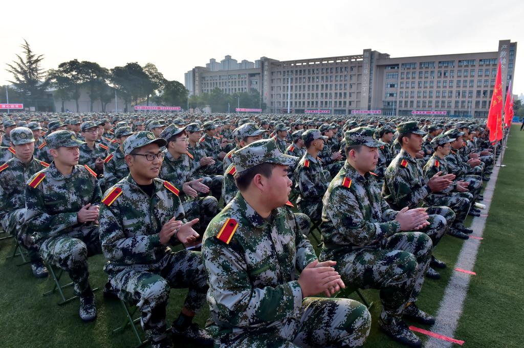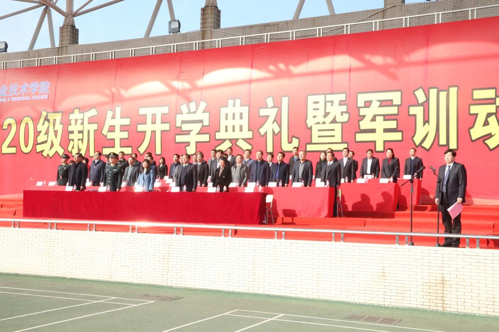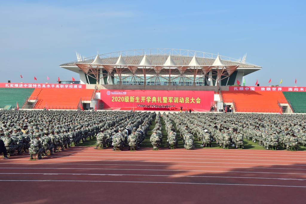 党委副书记、纪委书记刘粉莲,副校长张迪、祝战斌,学校二级教授、教学名师、陕西省师德先进个人、陕西省青年杰出人才等教师代表,各分院、各处室负责同志,2020级新生,以及军训教官等近8000人参加开学典礼暨军训动员大会。