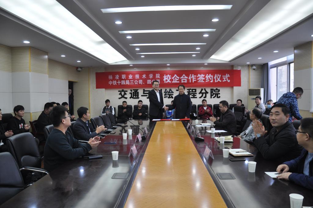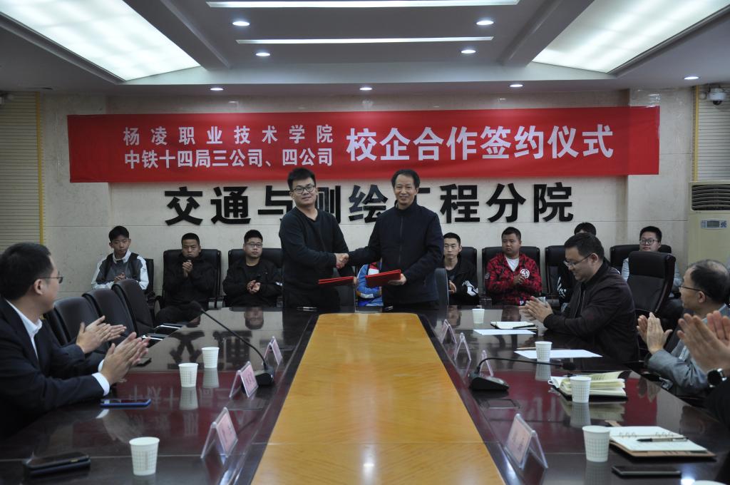 10月15日,威廉希尔官网与中铁十四局集团第三工程有限公司、第四工程有限公司校企合作签约仪式举行。第四工程有限公司人才资源部部长朱家宽、兴安盟项目部办公室主任蒲松柏,第三工程有限公司人才资源部曹杰;威廉希尔官网招生就业处处长袁军儒,交通与测绘工程分院院长张养安、副院长周波,以及部分教师、2021届毕业生代表参加了签约仪式。