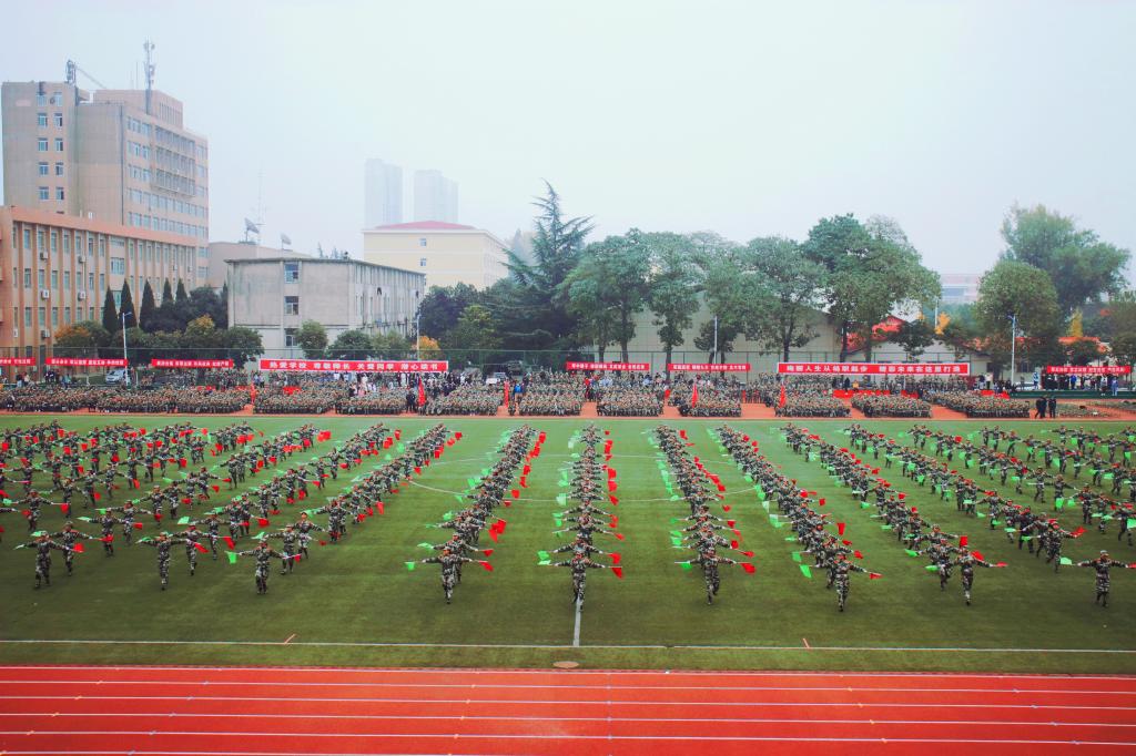 军训汇报表演暨总结表彰大会在庄严的国歌中拉开帷幕。参训学生精神抖擞、士气高昂,在教官们的统一指挥下,进行了会操表演,并表演了军体拳、警棍盾牌术、匕首操、战术动作及战场救护、旗语等单项科目,展示了14天的军训成果。
