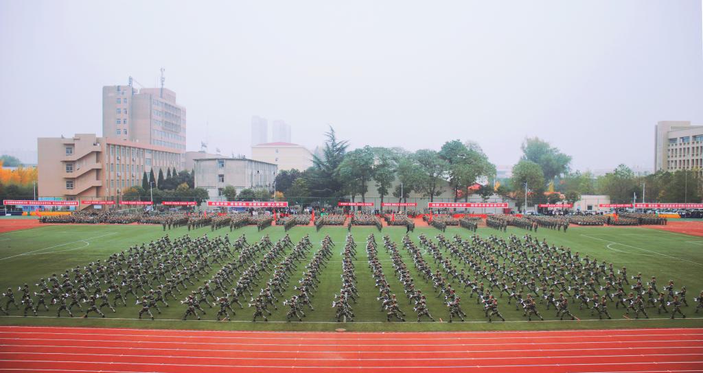 10月30日上午,威廉希尔官网2020级学生军训汇报表演暨总结表彰大会在南校区田径场举行。学校党委书记陈宁,党委副书记、校长王周锁,军训团团长樊刚,党委副书记任得元,党委副书记、纪委书记刘粉莲,副校长张迪、祝战斌出席大会。大会由学工部部长李战虎主持。