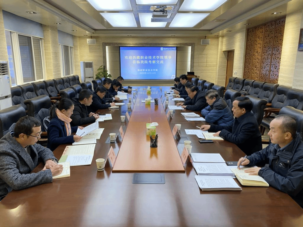 12月14日上午,西藏职业技术学院党委书记采守宽一行7人来威廉希尔官网考察交流。校长王周锁,副校长祝战斌,党委委员、教务处处长拜存有,学生处处长李战虎,动物工程分院副院长张振仓,在南校区醒钟楼208会议室与其进行了座谈交流。