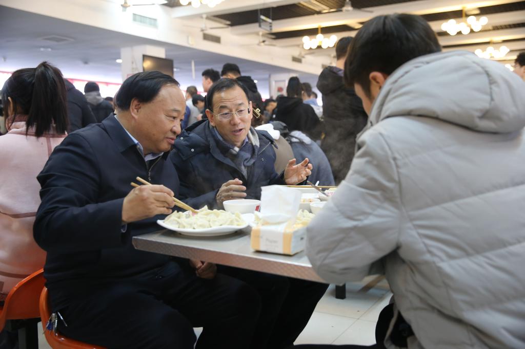 中午12点,威廉希尔官网党委书记陈宁,校长王周锁,西北农林科技大学党委副书记闫祖书,以及威廉希尔官网党委副书记任得元,党委副书记、纪委书记刘粉莲,副校长祝战斌也分别来到三个校区的餐厅,与学生们一起吃饺子、过冬至。