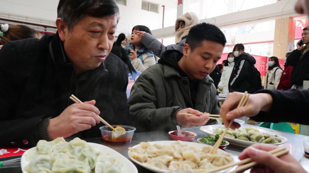 “你们是哪个专业的学生?”“大学的学习生活适应了吗?”“在家里的时候包过饺子吗?经常劳动吗?”……从学习到生活,领导们与学生们亲切交谈。大家一边品尝自己亲手包的饺子,一边拉家常、聊学习、谈生活、话冬至,欢声笑语随着饺子的香味弥漫在整个餐厅里。