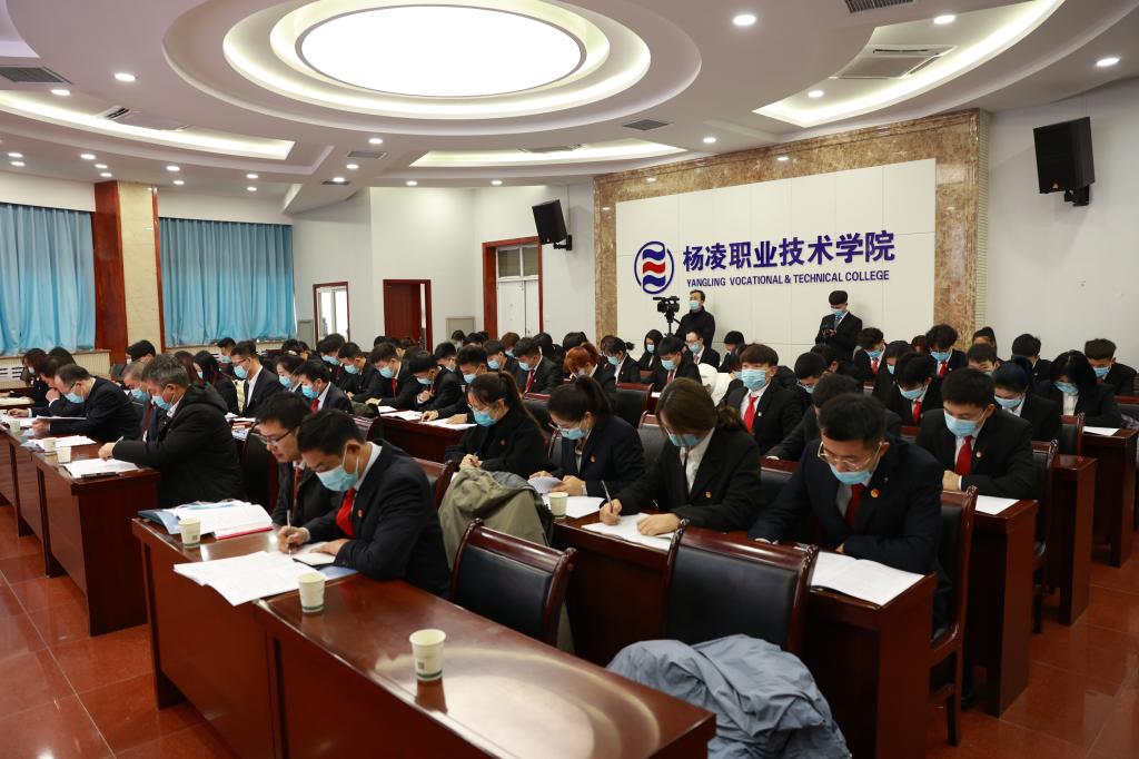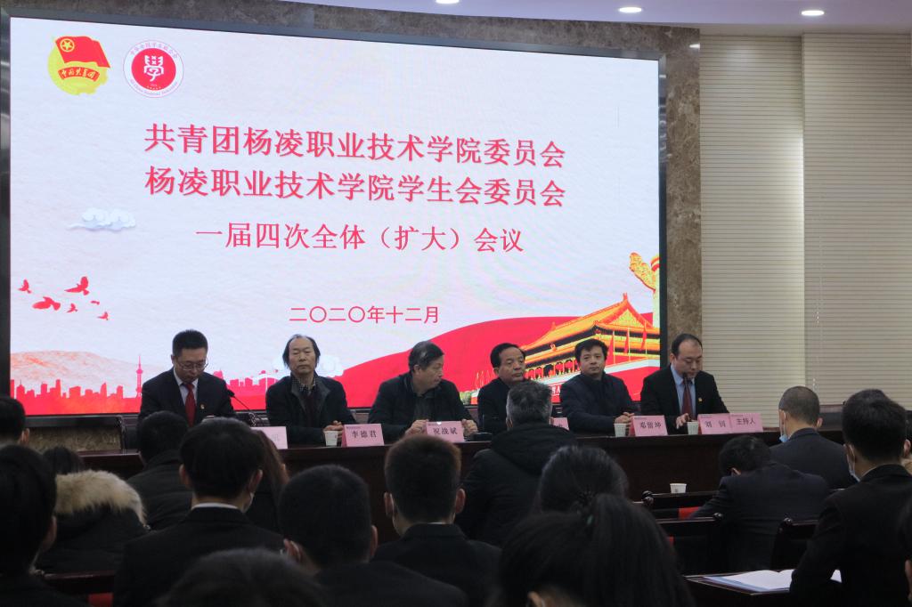 12月25日,共青团杨凌职院委员会暨杨凌职院学生会委员会一届四次全委(扩大)会议召开。副校长祝战斌出席会议并讲话;党委学工部部长、学生处处长李战虎,书画艺术中心主任李德君,学工部副部长、学生处副处长邓留坤,团委书记陈吼,以及团委委员,各团总支书记、副书记,团员代表和学生代表90余人参加了会议。