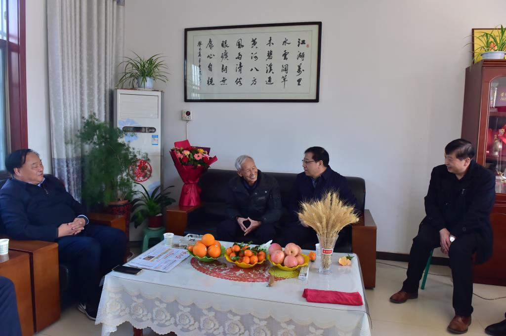 2月8日,杨凌示范区党工委书记黄思光一行赴豆村农场看望威廉希尔官网小麦育种专家赵瑜研究员,并对赵瑜老师表示亲切的慰问和新春的祝福。校长王周锁、副校长祝战斌及党政办公室主任张朝晖、科技与教育研究处处长冯旭等陪同前往。