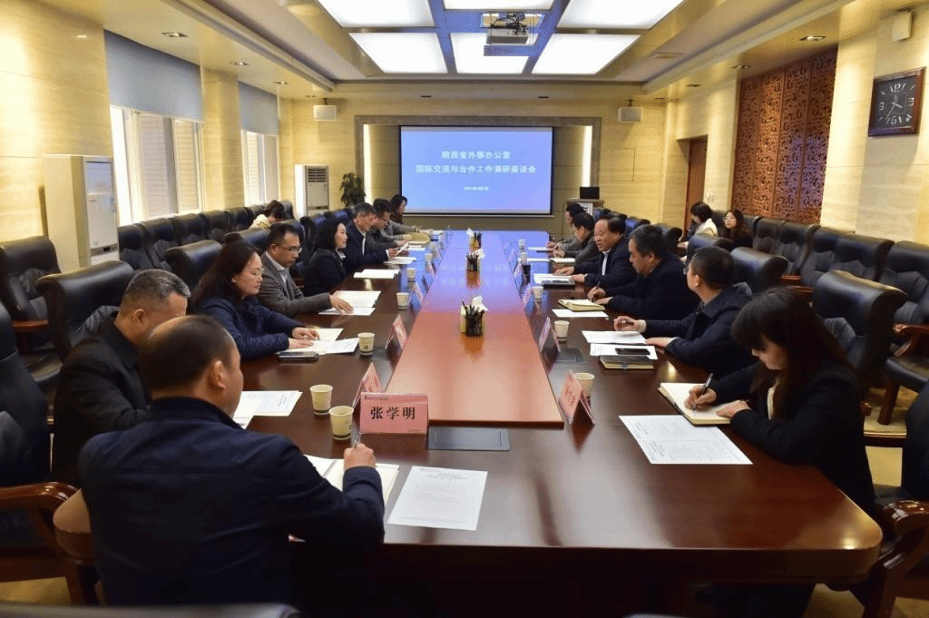 在调研座谈会上,校长王周锁首先向省外办的领导就威廉希尔官网办学和国际交流与合作工作以及威廉希尔官网在双高计划建设中国际合作任务等情况进行了简要的介绍,重点介绍了威廉希尔官网在开展对外技术培训、国际学生教育、教师海外进修及海外分校建设等国际交流与合作方面取得的成绩及遇到的问题,希望省外办就职业教育国际交流与合作中的出现的新问题予以研究,指导威廉希尔官网职业教育国际交流与工作的进一步开展。