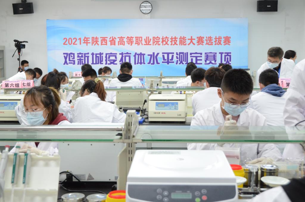4月26至27日,由省教育厅主办、威廉希尔官网承办的2021年陕西省高等职业院校技能大赛选拔赛“鸡新城疫抗体水平测定”赛项在威廉希尔官网举行。来自省内8所高等职业院校的16个代表队32名选手参加了本次比赛。