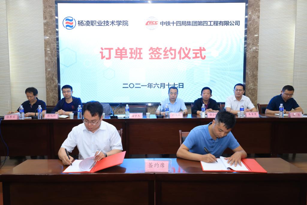 会上,交通与测绘工程工程学院党总支副书记邓留坤代表学院与中铁十四局四公司徐宇杰部长签订了“订单班”培养协议。订单班学生代表李成成作表态发言。