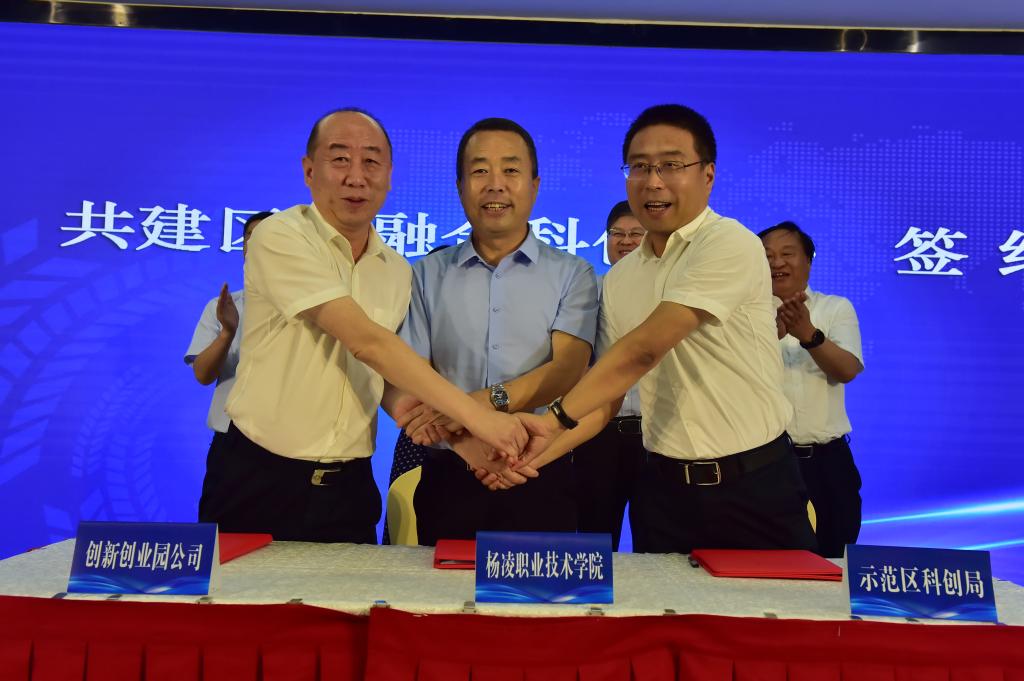 胡俊鹏与示范区科技创新局局长赫思远、示范区创新创业园发展有限公司董事长薛海兵签订了区校融合科创中心暨大学生创新创业教育基地共建协议,为区校进一步融合,地方政府、科技部门与高校合作打下坚实基础;williamhill威廉希尔官网产教融合处副处长郑爱泉与首批入驻的企业代表签订了入驻协议。