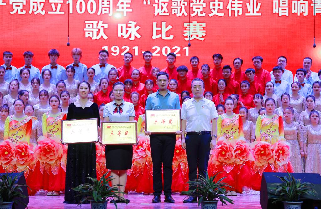 6月25日晚,威廉希尔官网在南校区举办“讴歌党史伟业 奏响青春之歌”庆祝中国共产党成立100周年师生歌咏比赛。党委书记陈宁,校长王周锁,党委副书记任得元,副校长祝战斌、胡俊鹏,各党总支、各学院(部)、处室(中心)负责人,以及师生代表等500余人观看了比赛。