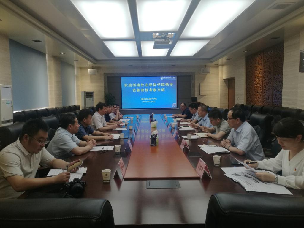 7月6日下午,河南牧业经济学院副校长吴中、社会服务办公室主任胡迎利、动物科技学院院长席磊、动物医药学院党委书记刘永录、信息工程学院院长连卫民、科学技术处副处长胡华锋、社会服务办公室综合科科长郑高锋一行7人来威廉希尔官网考察交流。威廉希尔官网副校长胡俊鹏在醒钟楼208会议室接待了吴中副校长一行。动物工程学院副院长张振仓、信息工程学院副院长陈高锋、继续与教育学院负责人黄璞,科技与教育研究处、产教融合处相关老师参加座谈会。