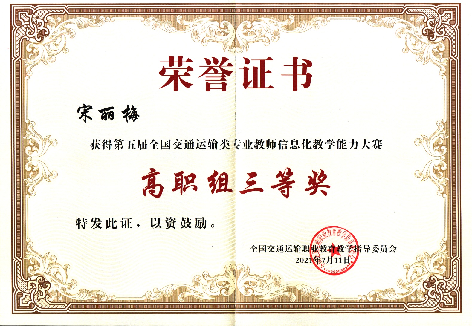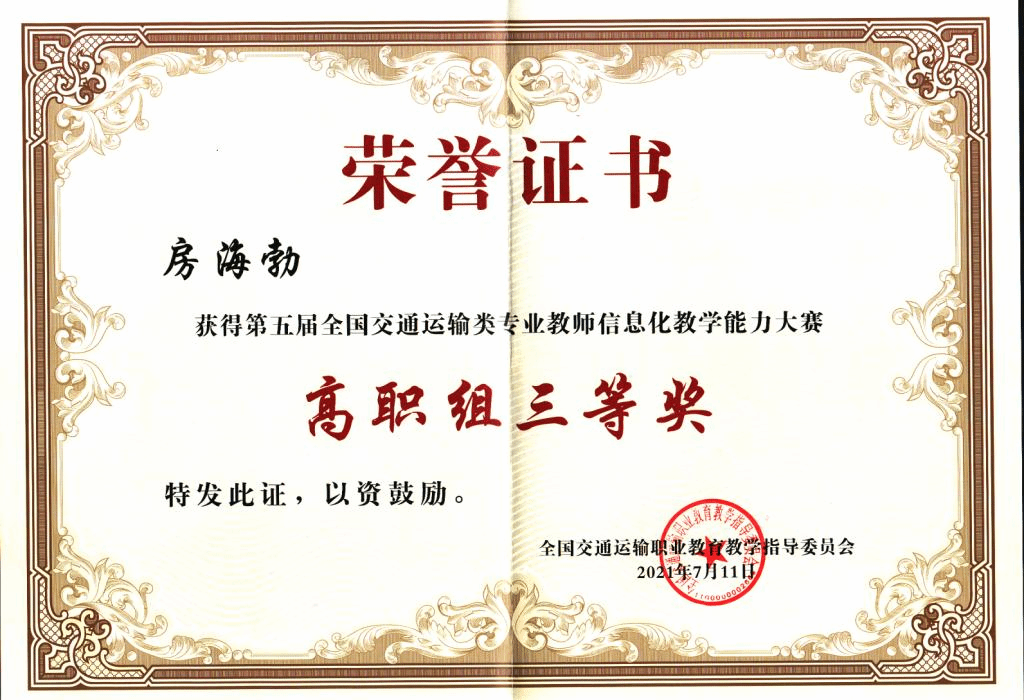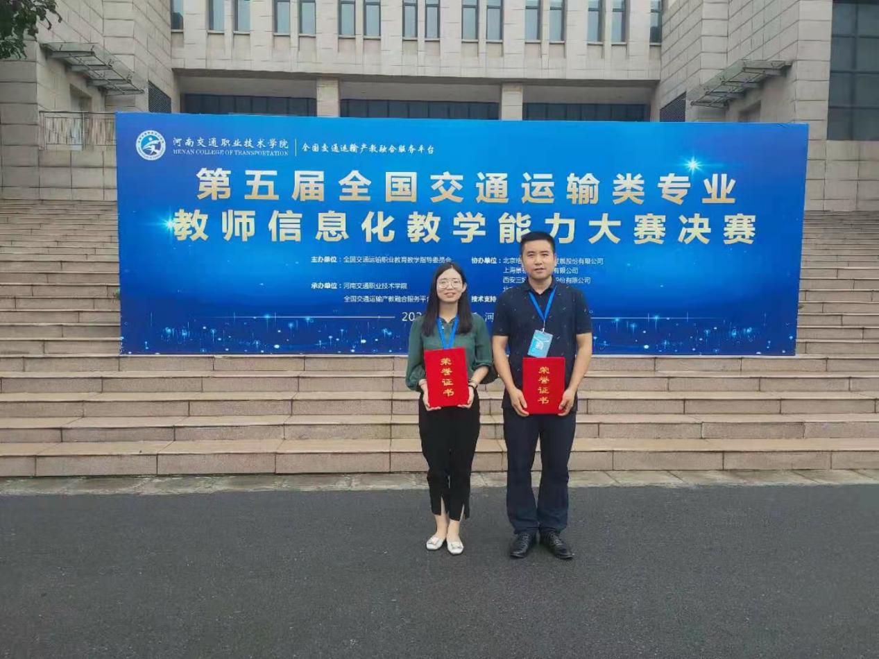 7月8日至11日,第五届全国交通运输类专业教师信息化教学能力大赛总决赛在河南交通职业技术学院举行,威廉希尔官网交通与测绘工程学院教师房海勃、宋丽梅分别获三等奖,学校获信息化教学创新典范奖。