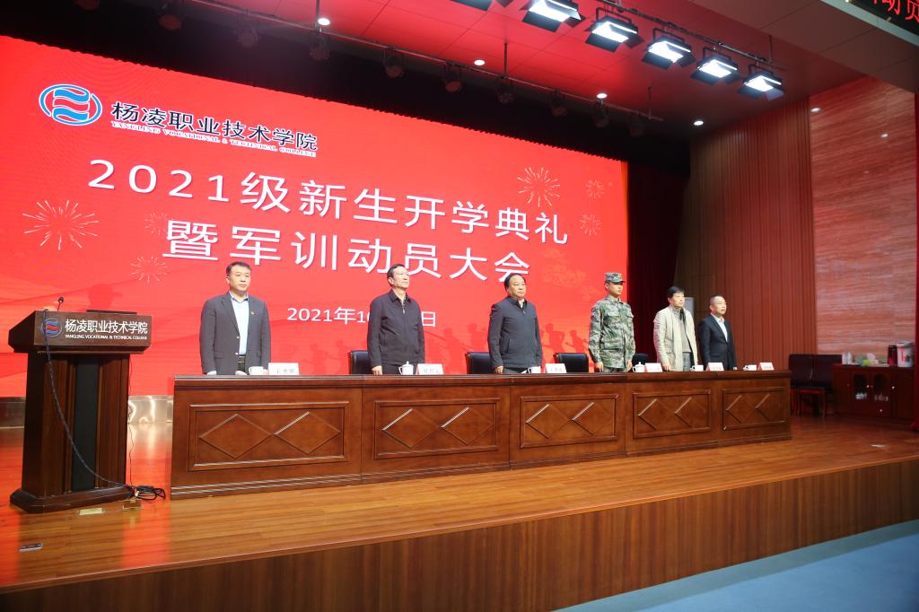 王周锁在讲话中首先代表全校2.2万余名师生对来自全国各地的7000余名2021级新生表示热烈欢迎,并简要介绍了学校基本情况。他以校训“明德强能、言物行恒”为题,寄语新生:要以明德为本,努力成为有高尚品德的杨职人;要以强能为基,努力成为建设技能中国的杨职人;要以言物为尺,努力成为创造质量强国的杨职人;要以行恒建功,努力成为复兴民族大业的杨职人。他强调,校训是杨职人的“标签”和一生的“烙印”,希望同学们用心学在杨职、热爱杨职,从一代代优秀的杨职人身上找到参考答案,为青春添上浓墨重彩的一笔,为杨职的明天、祖国的未来谱写新的篇章。