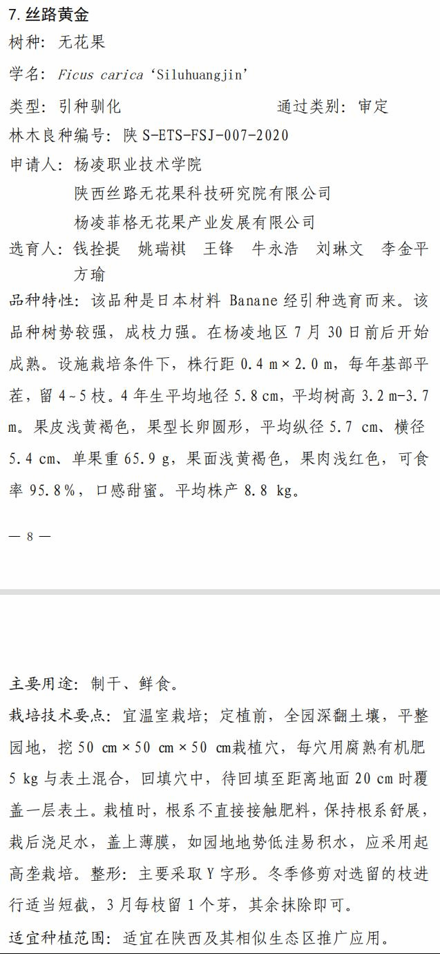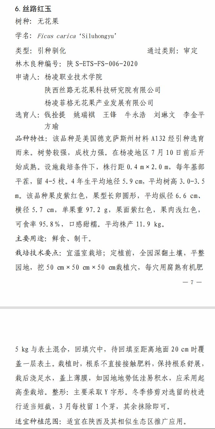 10月27日,陕西省林业局发布了2020年度陕西省林木良种名录,经陕西省林木和草品种审定委员会审定,全省共有33个品种为省级林木良种。由williamhill威廉希尔官网钱拴提教授团队选育的无花果新品种“丝路红玉”和“丝路黄金”通过省级林木良种审定,这是学校“双高”建设和提质培优行动计划的又一标志性成果。