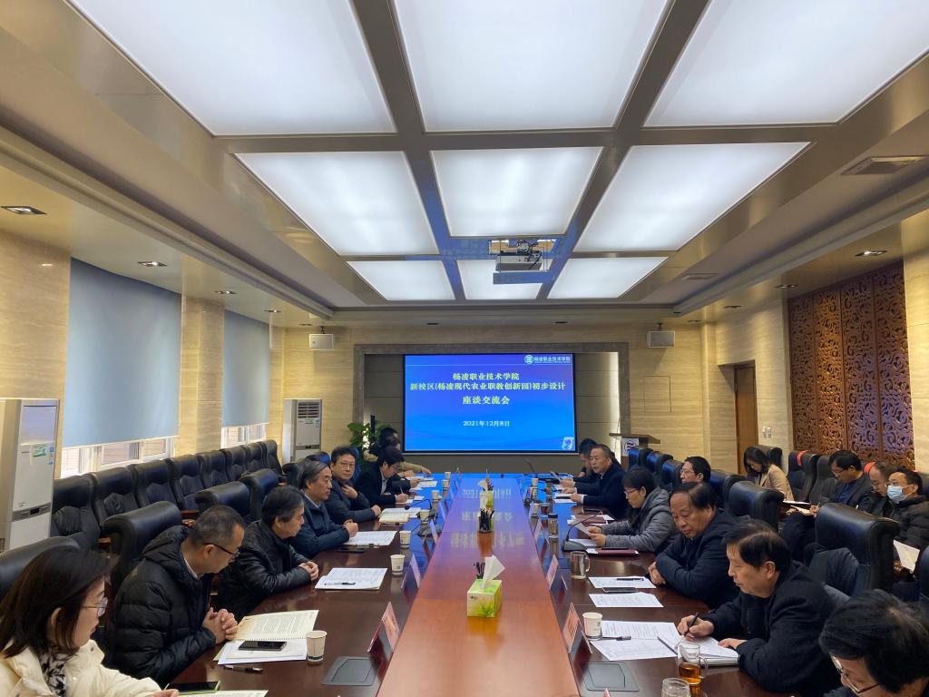 12月8日,学校在南校区行政教学综合大楼208会议室召开新校区(杨凌现代农业职教创新园)初步设计座谈交流会。党委书记陈宁,校长王周锁,党委副书记任得元,副校长祝战斌、胡俊鹏,党委委员、组织部部长田争运,党委委员、党政办公室主任张朝晖,中国建筑西北设计研究院党委委员、院总工程师杨琦,院总建筑师、省工程勘查设计大师安军,院副总建筑师、二院院长马晓东,二院副院长张成刚,院副总工程师许嵘及相关设计工作人员参加了座谈会。座谈会由党委书记陈宁主持。