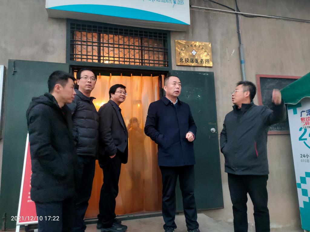 胡俊鹏一行实地查看了三校区内布设在公寓楼、办公楼、教学楼、食堂、浴室周边,以及植被茂盛的围墙等重点区域的鼠饵投放站,查阅了鼠饵投放及检查记录,并检查了三校区食堂食品安全卫生工作。随后,深入校医院检查了传染病防控教育宣传情况,对校医院的发展和医疗队伍建设等提出了意见建议。
