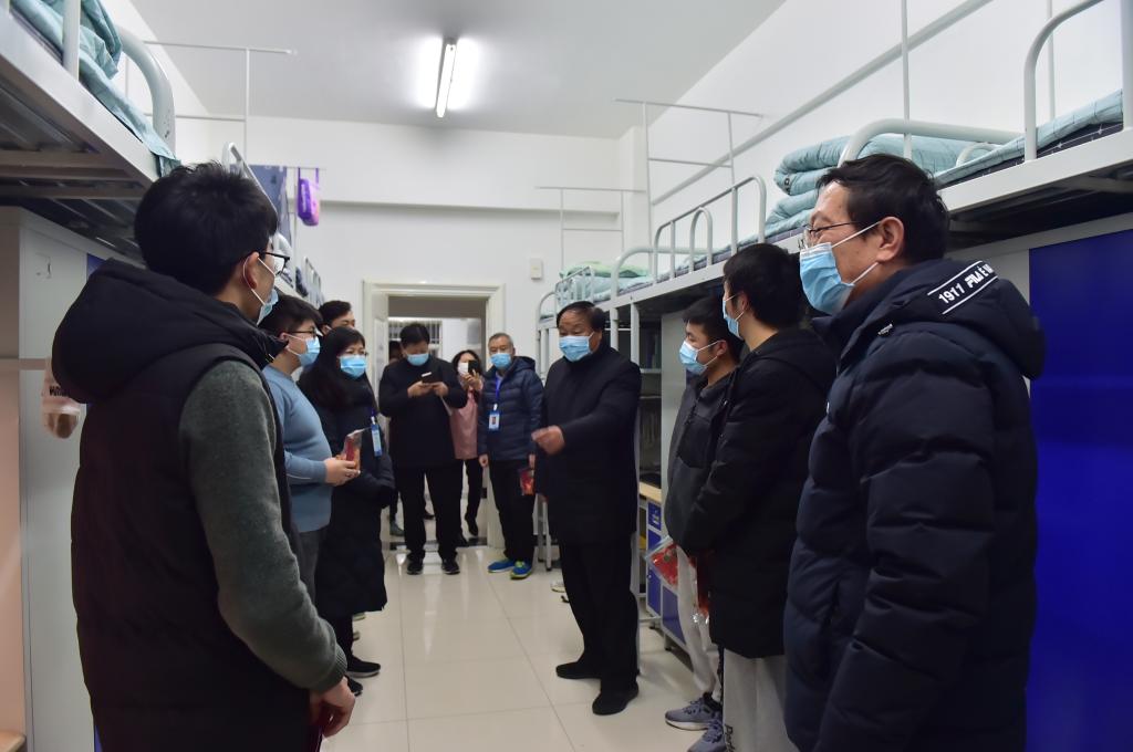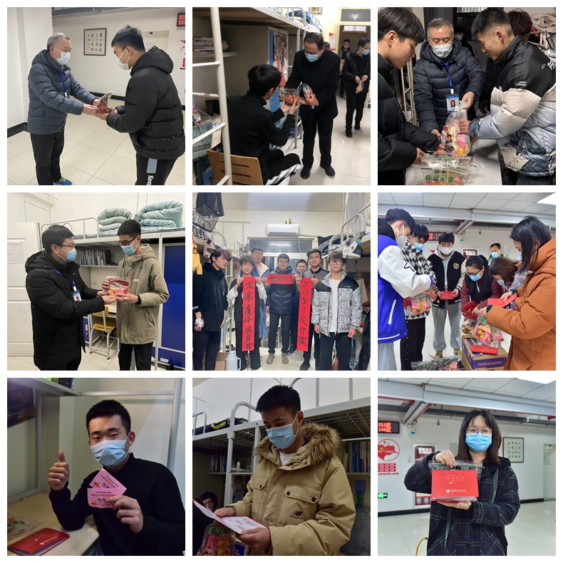 每到一个宿舍,学校领导们都亲切的与同学们交流,了解大家的思想动态和学习生活情况,并通过“苹”安“橘”祥的新年礼物,祝大家在新的一年平安吉祥、学业有成,为取得更大成绩、实现自我梦想奠定扎实基础。领导们叮嘱大家,一是要科学防疫、健康成长,在做好自我防护的同时,合理安排好学习生活,保持积极向上、理性思考的精神状态。二是要加强与老师、家人的沟通交流,理解当前特殊时期学校所采取的管理措施及规定,坚定战胜困难的信念信心,在防疫斗争中磨炼意志、淬炼思想,配合学校共同做好疫情防控工作。