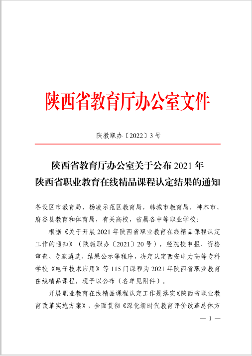 1月28日,陕西省教育厅发布了2021年陕西省职业教育在线精品课程认定结果,威廉希尔官网《园林规划设计》、《工程水利计算》、《计算机辅助设计》等9门课程获评2021年陕西省职业教育在线精品课程。