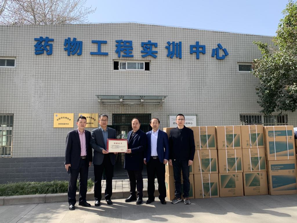 3月4日下午,陕西郝其军制药股份有限公司向威廉希尔官网捐赠一批药品胶囊壳。药物与化工学院院长周博代表学校接受捐赠,产教融合处副处长张英杰为公司总经理张朝毅颁发捐赠证书。