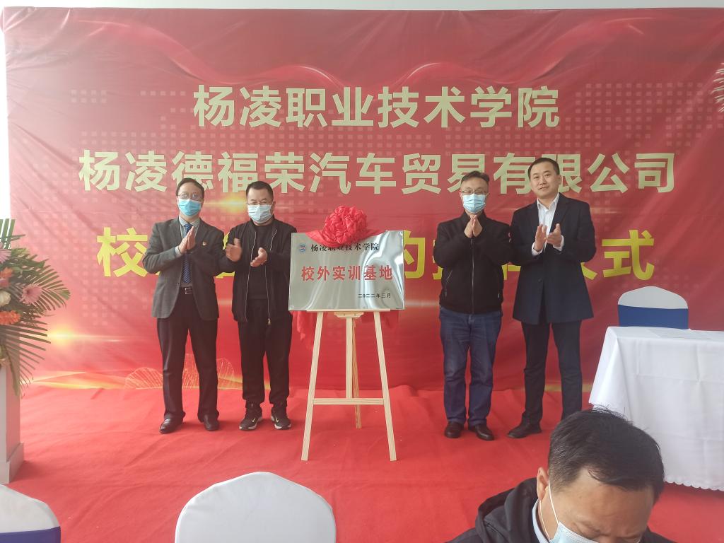 3月30日上午,威廉希尔官网机电工程学院与杨凌德福荣汽车贸易有限公司举行校企合作签约暨校外实训基地揭牌仪式。杨凌示范区工商联党组书记卓涛,杨陵区委常委、组织部部长王勇,杨陵区工商联党组书记李俊苗、工信局局长陈团江及李台街道党工委相关领导,威廉希尔官网机电工程学院党总支书记马秀魁、院长龙建明,杨凌德福荣汽车贸易有限公司法人穆斌、总经理穆涛等出席签约仪式。