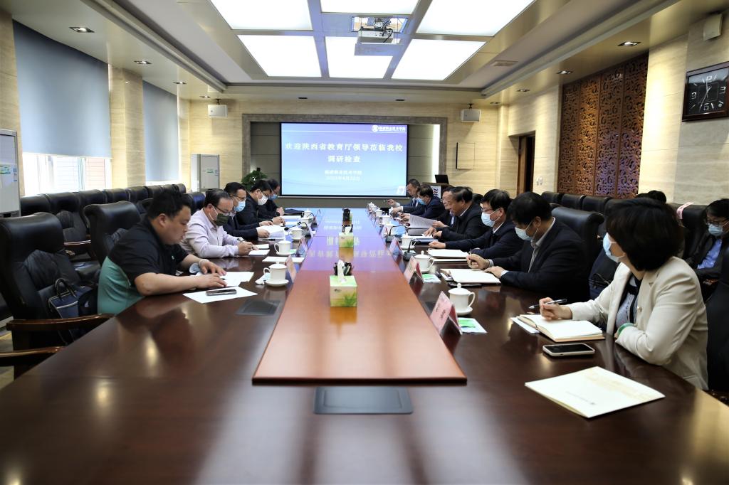4月22日,省教育厅副厅长高岭、发展规划处处长胡海宁、高校学生工作处处长唐澍、民办教育处处长陈国栋一行4人,来威廉希尔官网调研指导工作。学校校长王周锁、党委副书记任得元、副校长祝战斌、胡俊鹏,以及党政办公室、党委宣传部、水利工程学院、生态工程学院、生物工程学院、基建处相关负责人陪同调研。