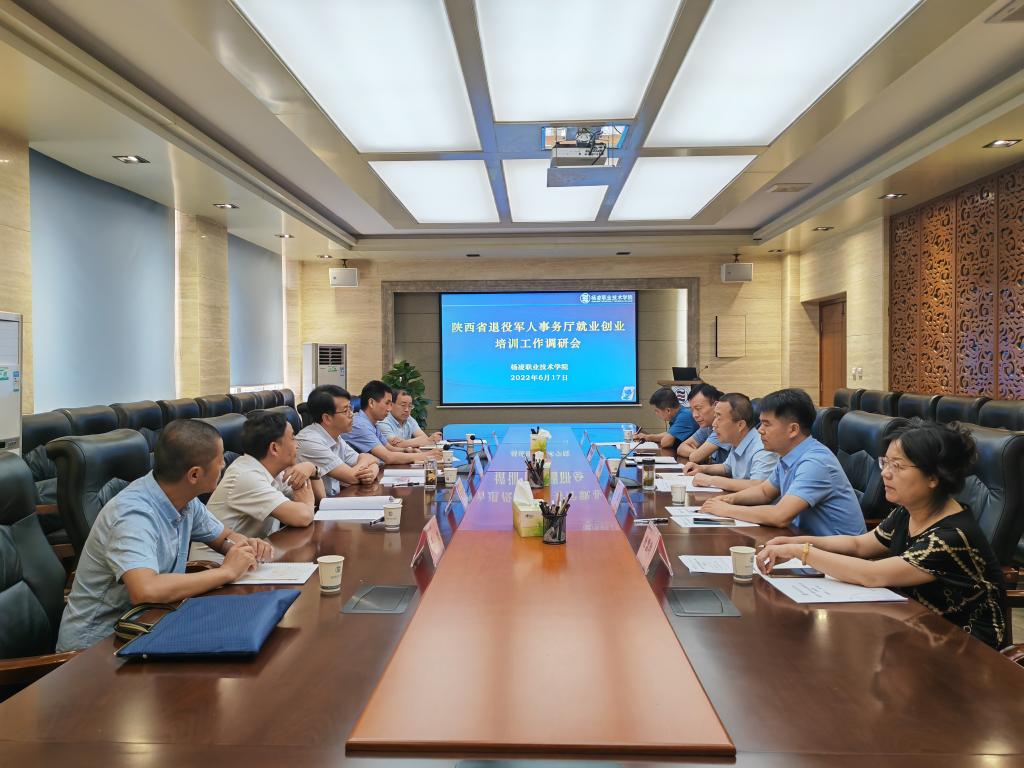6月17日,陕西省退役军人事务厅来校调研就业创业培训工作。陕西省退役军人事务厅党组成员、副厅长张小明、移交安置和军休服务管理处副处长张少军、就业创业处副处长李刚,杨凌示范区退役军人事务局局长李春安、办公室主任毛兴,学校副校长胡俊鹏、保卫处处长周宁、继续教育与培训学院、村干部(农民)发展学院负责人黄璞和相关部门工作人员参加调研座谈。
