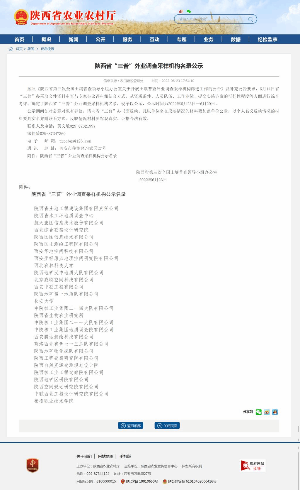 近日,陕西省第三次全国土壤普查领导小组办公室公布了《陕西省第三次全国土壤普查领导小组办公室关于开展土壤普查外业调查采样机构筛选工作的公告》,确定了全省“三普”外业调查采样机构名录,共有20家机构被确定为省“三普”外业调查采样机构,其中高校三家,职业院校仅威廉希尔官网一家。入选“三普”外业调查采样机构,是威廉希尔官网服务乡村振兴战略的又一重要契机。