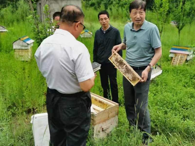 在各地专业合作社,祝战斌走访养蜂户,了解近期养蜂生产中存在的问题,就养蜂与种植业、林业有效结合发展;蜜蜂授粉对保持生态平衡,提高果品质量产量;蜂旅结合、打造科普基地,提高人们对蜂产品认知;多途径拓宽销售渠道等问题与合作社负责人及养蜂户座谈交流。