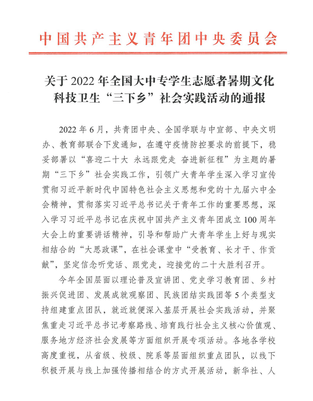 2022年暑期,学校开展了“万名学子进万村”乡村振兴大调研暨暑期“三下乡”社会实践活动,广大青年学子深入到基层,用实际行动诠释了的涉农高职院校大学生的使命与担当,为履行强农兴农使命、服务乡村振兴贡献了青春力量。校团委将以此次获奖为契机,带领广大青年矢志不渝永跟党走、踔厉奋发再谱新篇,以优异成绩迎接党的二十大胜利召开。