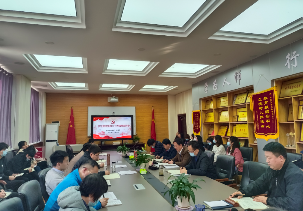 任得元要求,全体教职工要充分认识学习党的二十大精神的重要意义,原原本本、逐字逐句认真学习报告原文。一是领导带头学,学深悟透党的二十大核心要义;二是教职工加强自身建设,打造有“品格、品行、品味”的“大先生”;三是把学习成果转化为具体行动,落实到具体工作中,推动学校各项事业高质量发展。