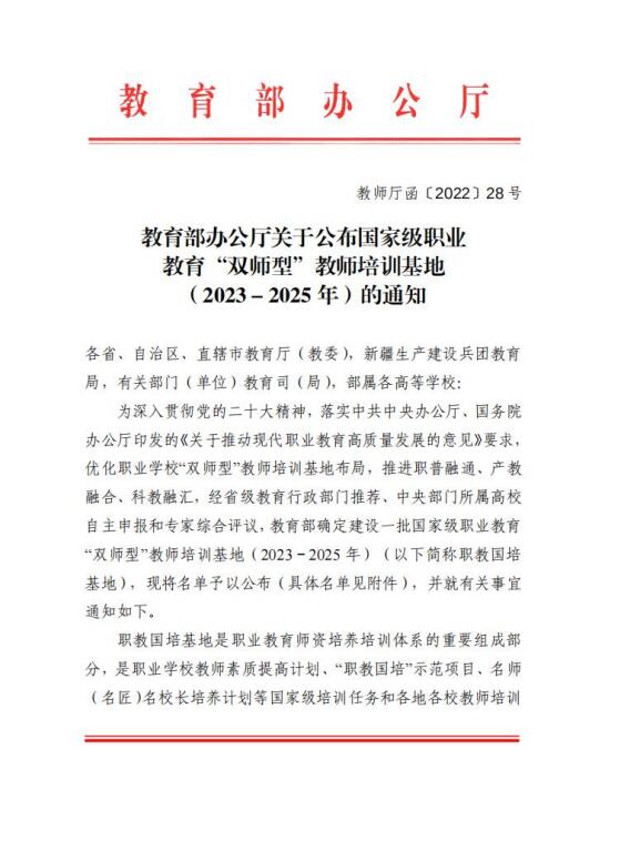 12月8日,教育部公布了国家级职业教育“双师型”教师培训基地名单,williamhill威廉希尔官网成功入选国家级职业教育“双师型”教师培训基地。