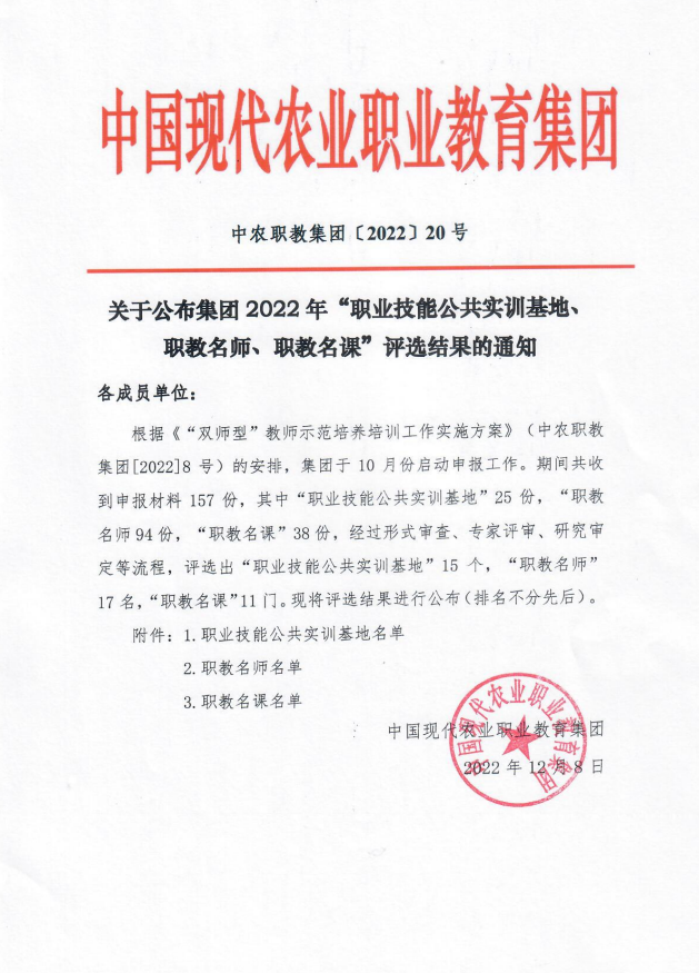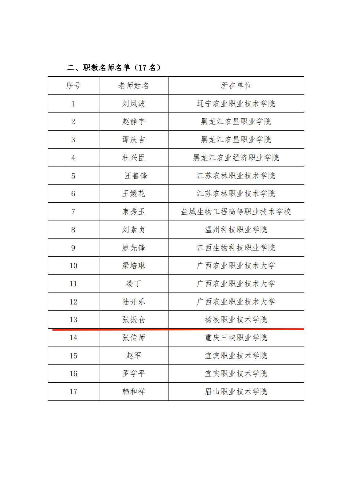 12月8日,中国现代农业职业教育集团公布了集团2022年职教名师评选结果,动物工程学院张振仓副教授获此殊荣。