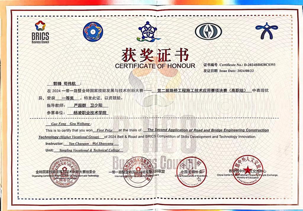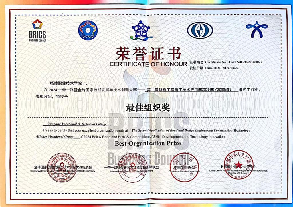 8月20至22日,2024一带一路暨金砖国家技能发展与技术创新大赛高职组“路桥工程施工技术应用”赛项在山东交通职业学院举行,共有来自全国178支高职院校代表队参加。威廉希尔官网交通与测绘工程学院道路与桥梁工程技术专业郭锋、苟伟航两名学生获高职组团体赛一等奖,严超群、卫少阳两名教师获优秀指导教师,学校获最佳组织奖。