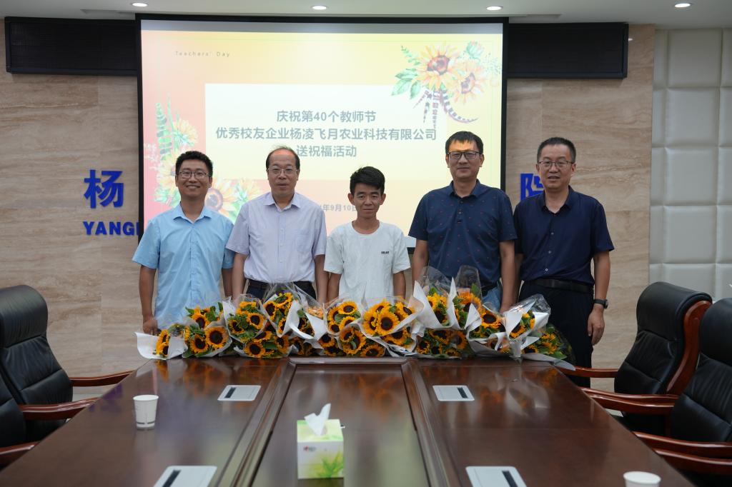 9月10日上午,威廉希尔官网校友、杨凌飞月农业科技有限公司总经理上官蒙飞专程返校,为母校送上教师节鲜花。校长仲伟周、副校长蒋平江亲切接见了上官蒙飞一行,并与校友进行座谈。人事教师处负责人,生物工程学院教师代表参加座谈。