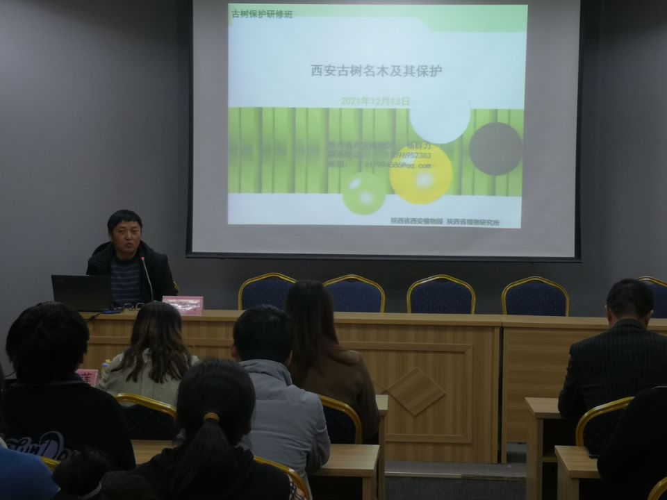 随后,陕西省植物研究所副所长、西安市植物园副主任、古树名木保护技术研究中心专家杨群力作了题为《西安古树名木及其保护》的讲座,从古树名木概念、西安古树名木介绍、古树名木保护与复壮等方面进行了讲解,让学生对古树名木保护有了进一步认识。